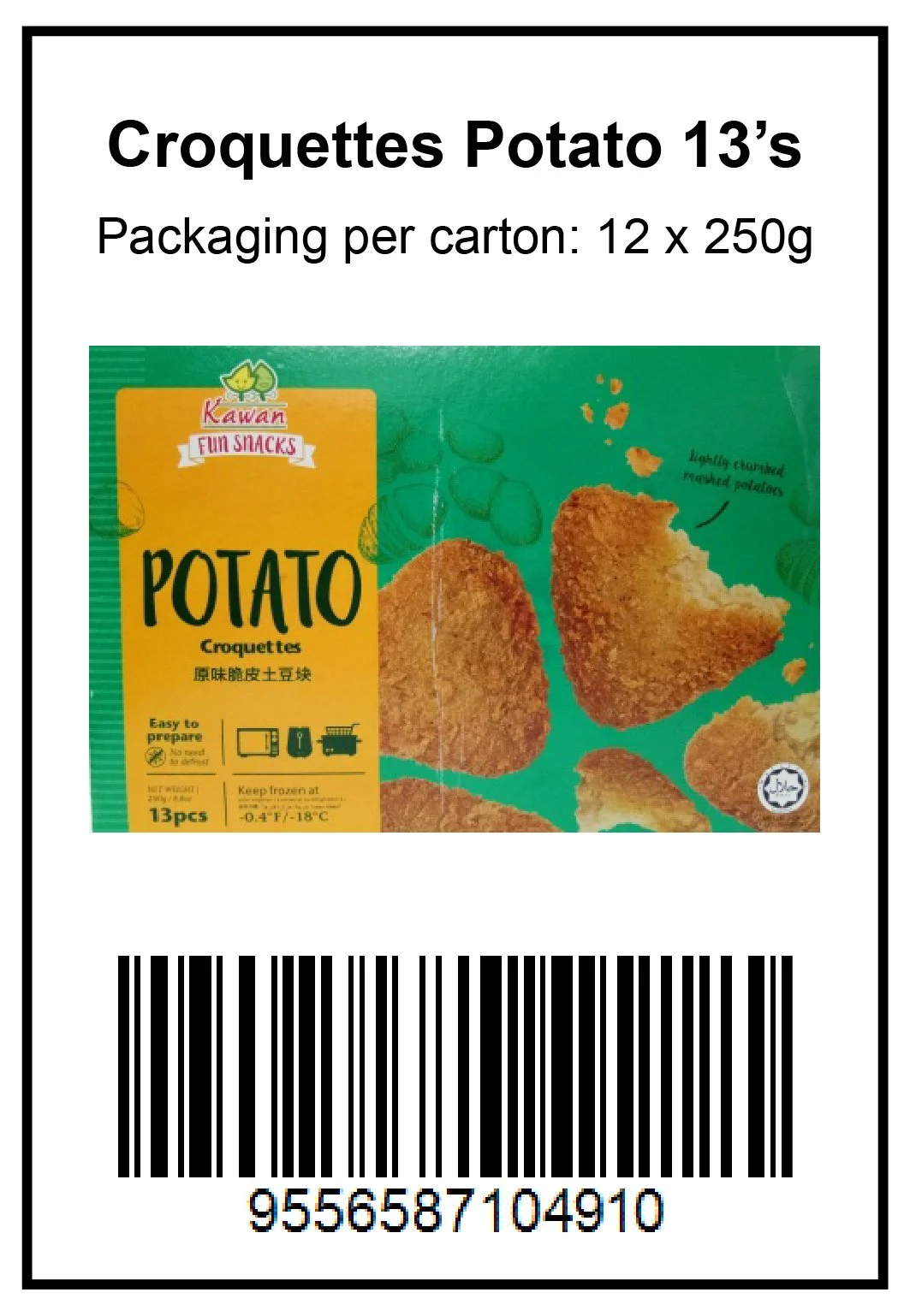 Lightly crumbed snack food in delicious blend. These snack food contain NO trans-fat and NO colouring to give you authentic taste every time. A quick and easy to bake, air fry or deep fry. Delicious snacks idea for everyone.